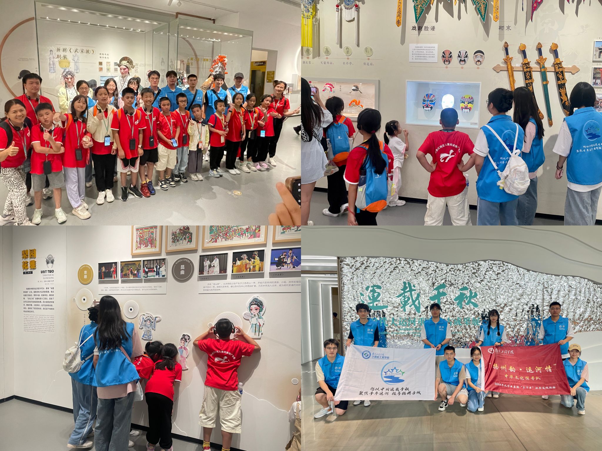 引导青年传承,拓展非遗研学。为进一步弘扬运河非遗文化,激发新时代青少年对传统文化的兴趣,调研团队联合大良红豌豆儿童阅读推广协会,在大运河博物馆开展了一堂“品味运河文化,讲好扬州故事”的文化探索课程,向小朋友讲述中国大运河申遗成功十周年江苏段重要考古成果。“看到孩子们认真探究运河文化的历史故事,我深刻感受到,非遗文化的传承不仅要靠我们这一代,更要靠千千万万的下一代。”数字媒体231班刘姝怡这样说道。