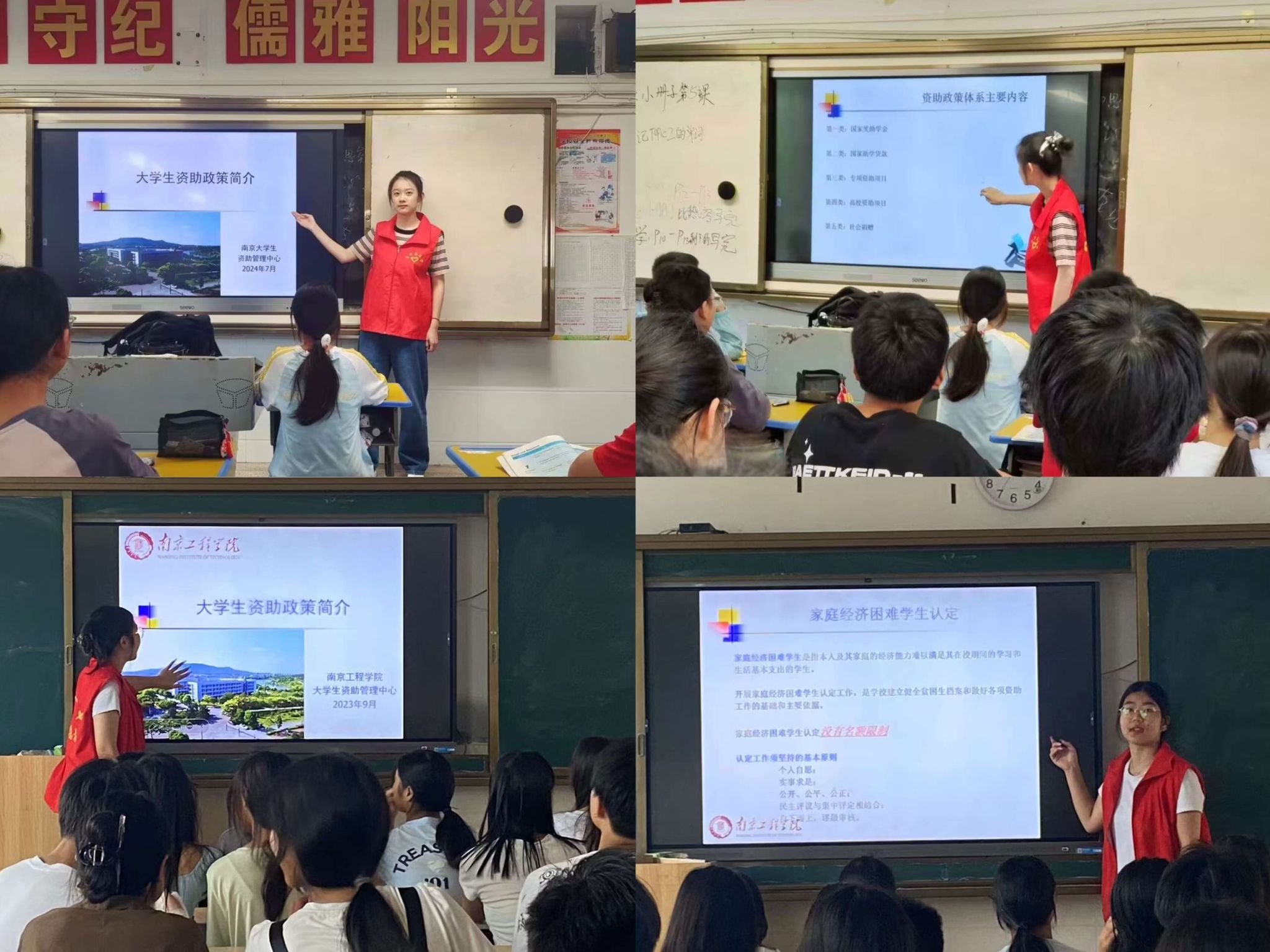 母校宣传话资助,温情陪伴助学程。团队成员邓思蕊、秦怡童回到湖北省咸宁市嘉鱼县第一中学、河南省洛阳市汝阳县第一高级中学给即将步入大学的学弟学妹们开展了两场高校学生资助政策宣讲活动。宣讲活动详细介绍有关国家奖助学金、国家助学贷款、经济困难认定、困难补助等国家政策。两位宣讲人还通过分享自身的校园活动和志愿服务经历,激励同学们在勤学奋进的同时,勇担新时代青年的责任与担当,积极反哺社会。