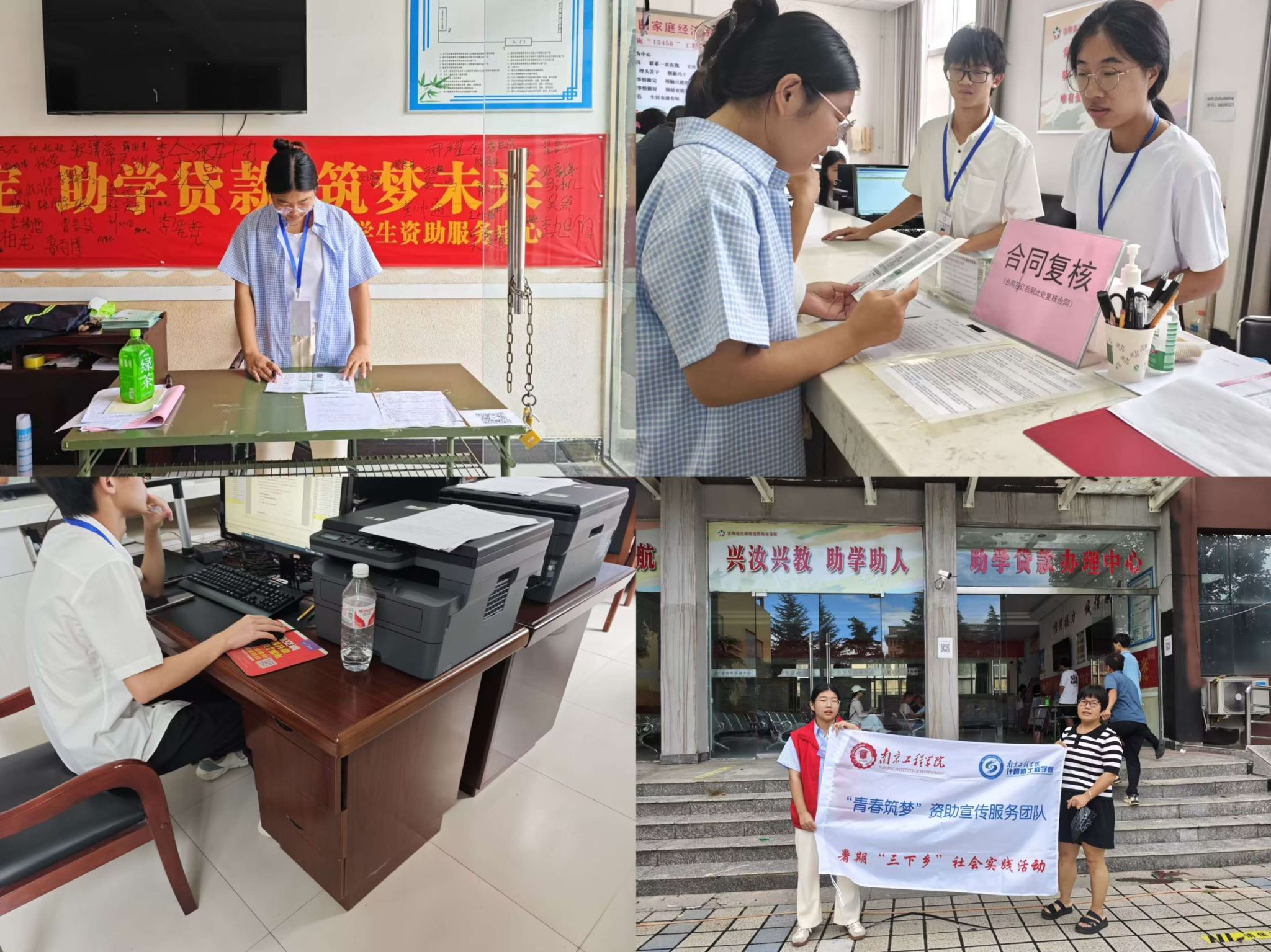 志愿关怀零距离,真情服务送四方。团队成员秦怡童、张尧玮等人在河南省洛阳市汝阳县资助中心、连云港市赣榆区资助中心开展了为期一周的志愿服务工作。在工作人员的培训和指导下,实践团成员协助引导服务工作和处理助学贷款办理等日常事务,向咨询人员详细解读学生资助范围、资助标准以及相关申请程序,加深群众对资助政策的了解。同时,成员们也深入了解当地资助政策的具体实施情况,更加认识到资助宣传工作的意义与挑战。“作为国家助学贷款的受益者,我十分感谢国家和社会,以后我会向阳而行,回馈社会。希望通过这次实践活动,让资助政策更深入人心!” 大数据221班秦怡童说道。