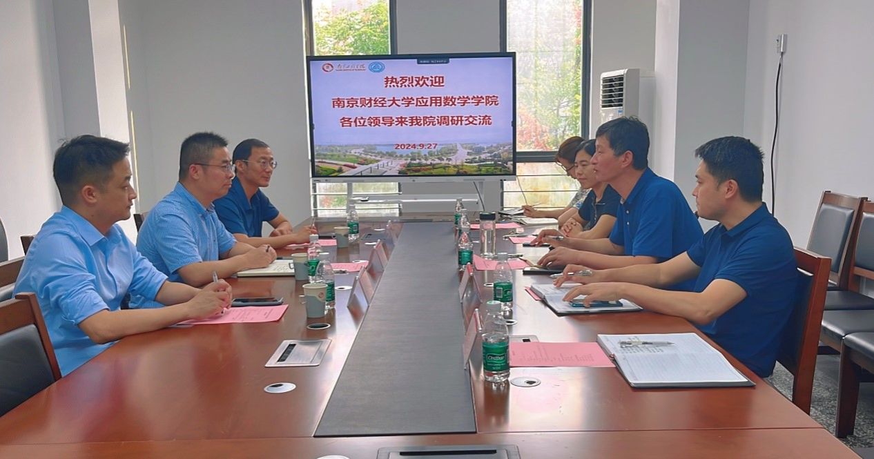 近日,南京财经大学应用数学学院方国昌院长、副院长孙成峰一行来访数理学院开展调研交流。数理学院院长崔云康、副院长张康群和相关专业系主任接待了来宾并进行了深入交流。