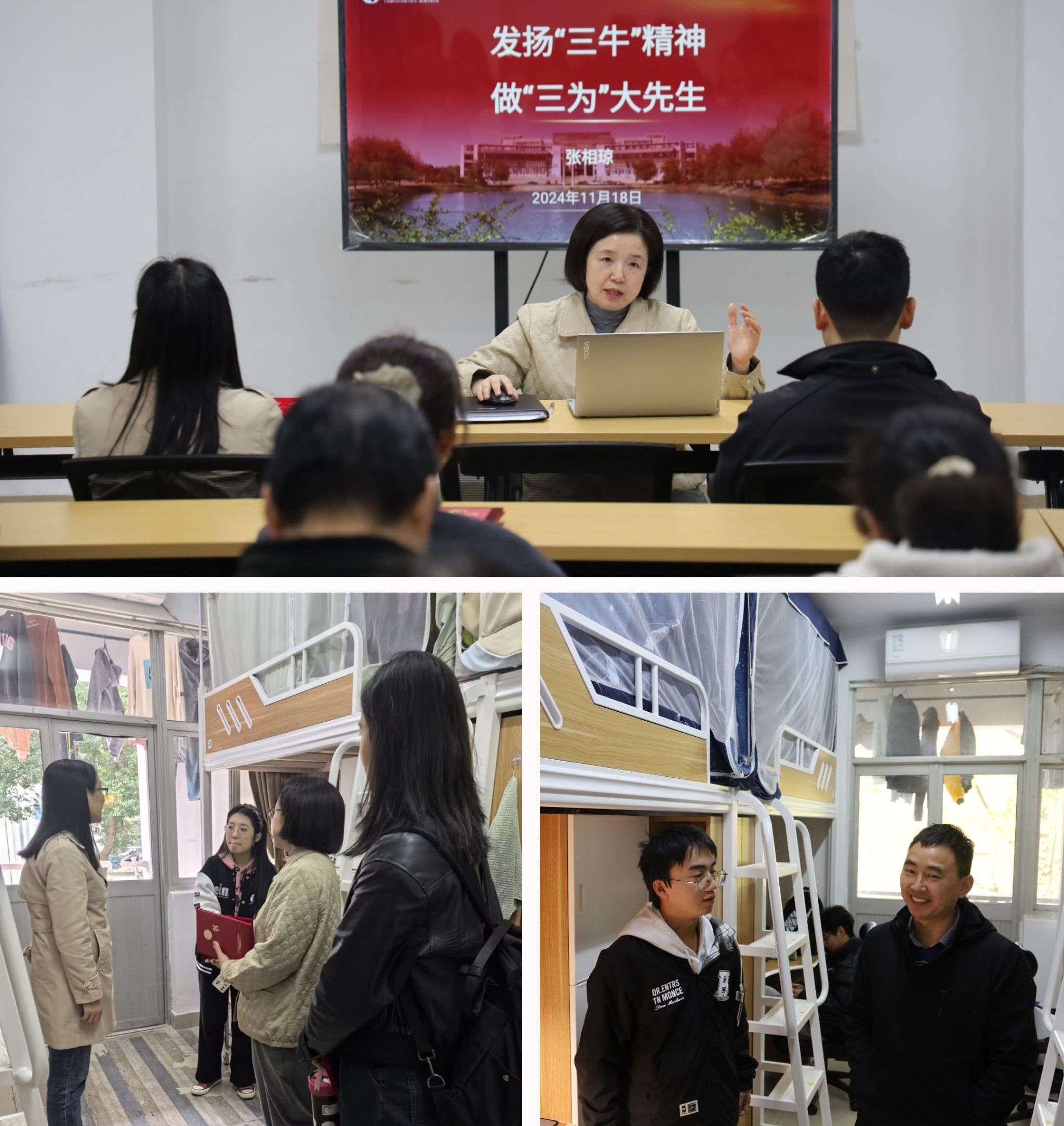 育人导师深入宿舍与青年学子进行交流,了解同学们近期的学习和生活情况,询问同学遇到的困难和疑惑,耐心解答并提出可行性的建议。“我们感受到了来自学院的满满关心和鼓励,今后一定不辜负老师们的期望。”同学们如是道。