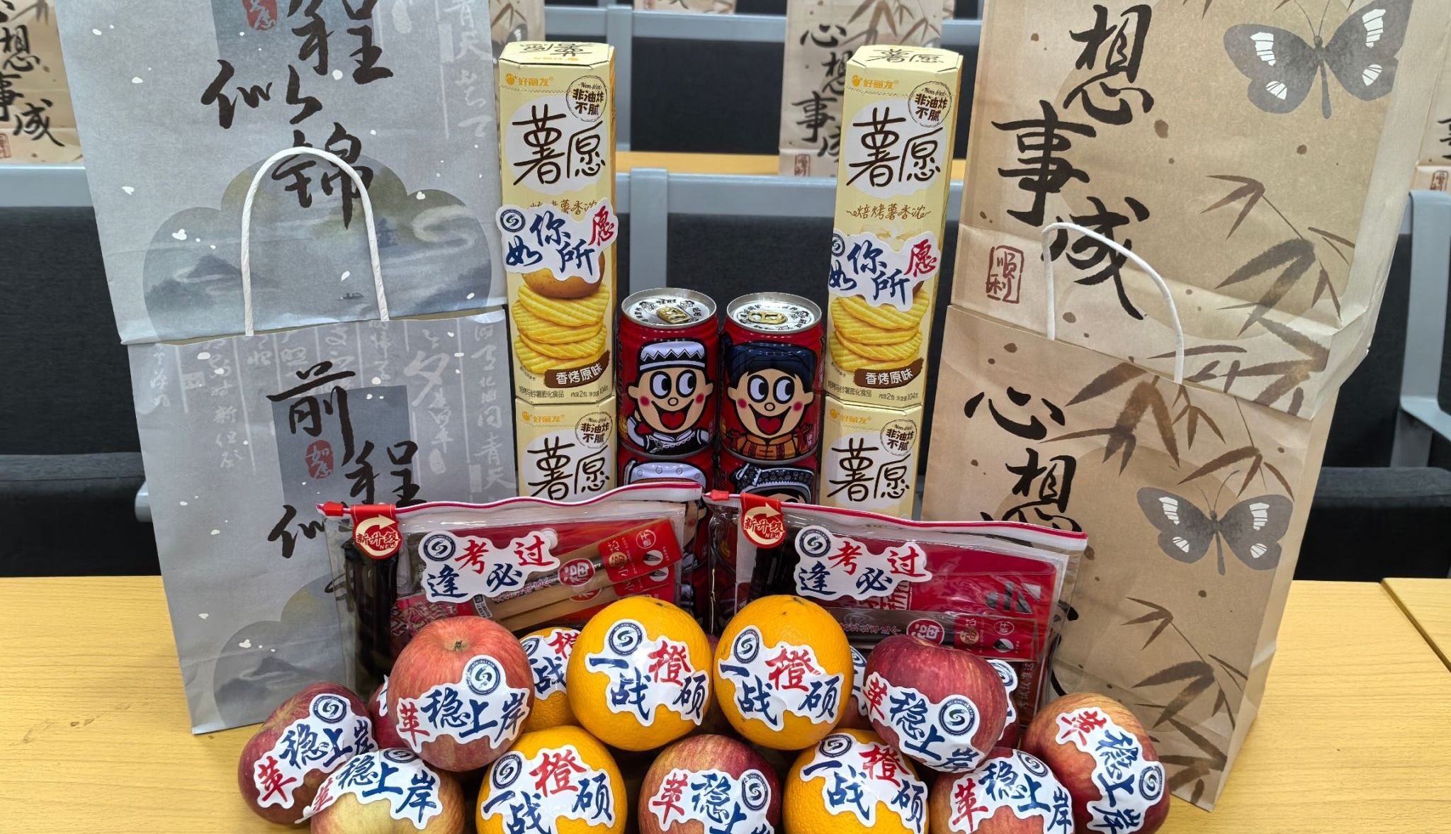 王晓红、刘艳华向正在积极备考的学子们表达慰问并发放“大礼包”,鼓励同学们在冲刺阶段,既要明确目标、坚定信念,用持之以恒的态度坚持到底,也要注重策略、掌握技巧,不断增强信心迎难而上,提醒大家在备考过程中戒骄戒躁,遇到任何问题和困难,及时与辅导员、专业课老师沟通,学院将始终是考研学子最坚强的后盾。心理健康工作辅导员组织同学们开展团体心理辅导活动,从心态调整、临考作息、考前饮食、备考节奏等方面叮嘱大家。“收到学院准备的‘一战成硕大礼包’和老师们的鼓励,我们惊喜又感动。脐橙、薯愿、苹果、旺仔牛奶、考试用品……每个礼物都凝聚着老师们的爱。”收到礼物的同学们纷纷表示带着这份温暖,以更加坚定的心态走下去,实现自己的梦想。