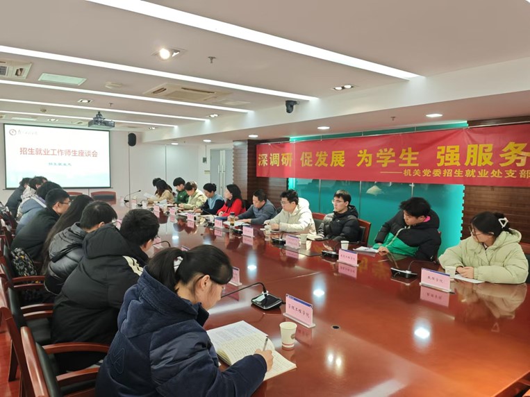 为深入学习贯彻习近平新时代中国特色社会主义思想,贯彻落实上级关于招生就业工作的相关决策部署,持续推进我校招生就业工作,健全完善“招生-培养-就业”工作机制,近日,招生就业处党支部开展以“深调研 促发展 为学生 强服务”为主题的党日活动,深入师生群体专题调研招生就业工作现状、学生所需所思所想,汇聚智慧、谋划发展,助力提升招生就业工作成效。招生就业处全体人员、各学院从事相关工作老师、校院两级相关学生组织负责人及就业信息员参加了活动。