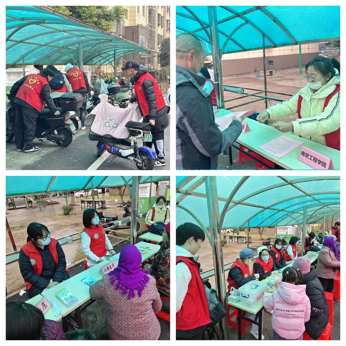 3月4日上午,机械凯发学生志愿者团队前往东山街道天宁雅居小区,协助江宁区第二医院的医护人员开展爱心义诊志愿服务。