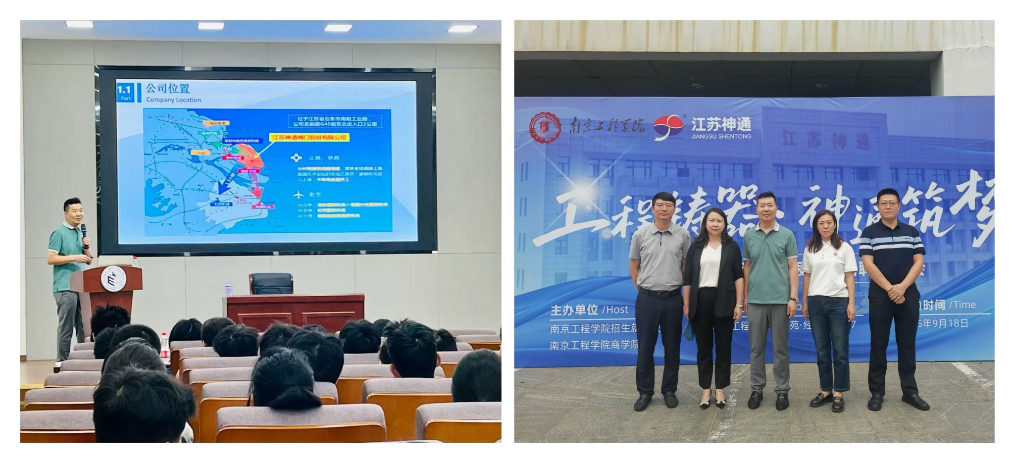 企业代表详细介绍了公司业务、人才需求及招聘政策,他表示作为国内特种阀门领域的上市企业,江苏神通深耕能源、冶金、核电等领域,希望继续与母校同向同行,进一步加强合作交流。